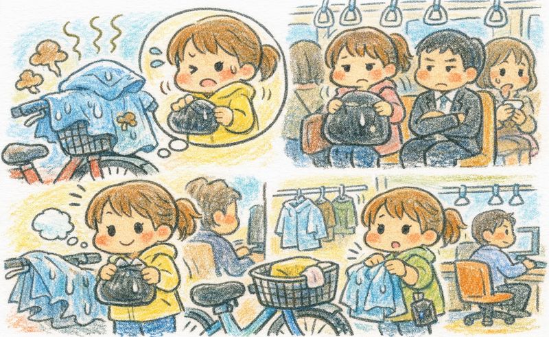 この記事では、自転車に乗った後にレインコートを乾かす方法や、電車内でのスマートな収納術、職場で目立たずに干すコツなど、シーン別にわかりやすくご紹介します。