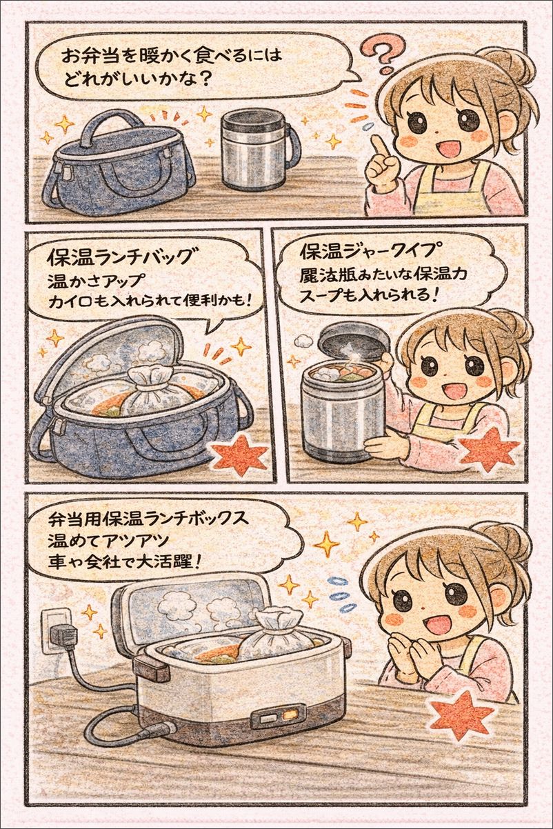 保温バッグにカイロと保温弁当箱(ランチジャー)では何が違うの?