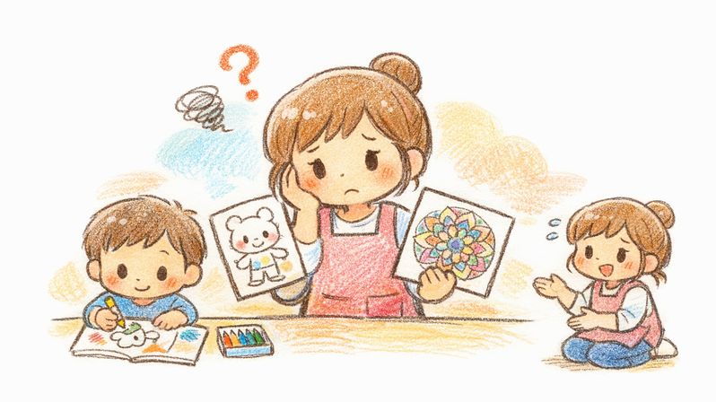 マンダラ塗り絵を保育で取り入れるって聞くと、「普通の塗り絵と何が違うの?」「ちゃんとできるかな?」って気になりますよね。