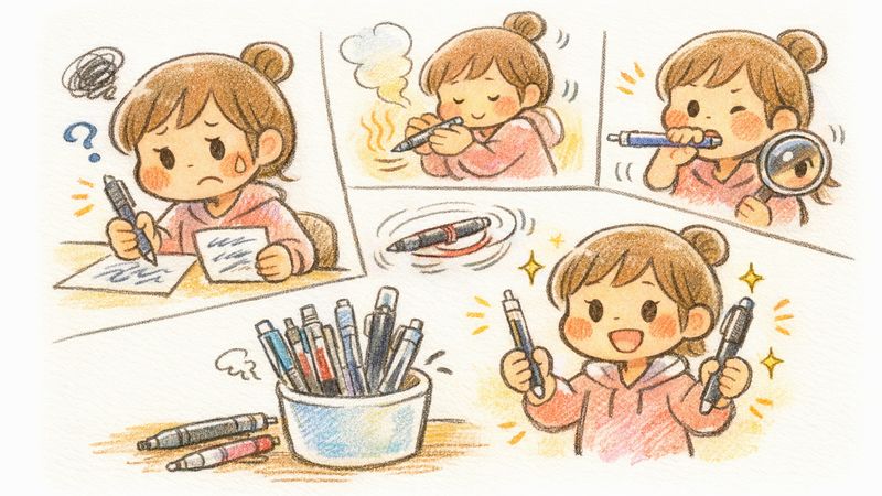 さらに、少しだけ温めてみる方法や、ペンを逆さに振ってみるといったちょっとした工夫も役立ちます。