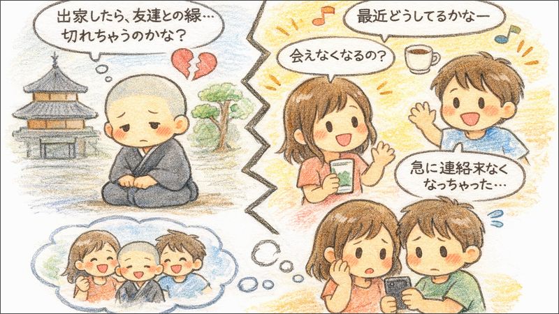 出家したからといって、友人関係が必ず切れてしまうわけではありません。