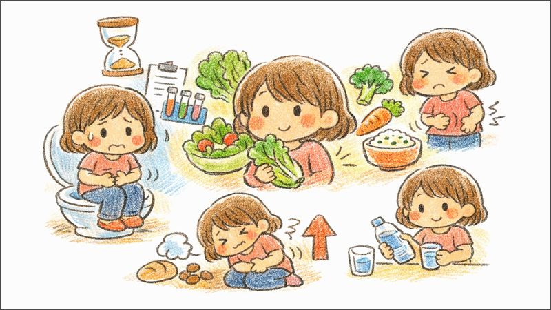 食物繊維は体に良いイメージが強いですが、急に増やすとガスや張りが出て、お腹が痛くなったり出しづらくなったりすることがあります。