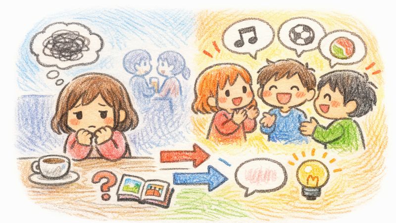 「自分は今日は聞き役に回ろう」と決めておくだけでも、無理に話さなきゃというプレッシャーから解放されますよ。