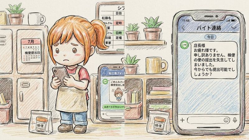 この記事では、提出し忘れに気づいたときにまず何をすべきか、そして店長や責任者への連絡の仕方を電話・LINEの両方の例文つきで紹介しています。