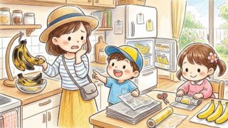 「昨日買ったバナナがもう真っ黒……」とショックを受けていませんか?冷蔵庫で黒くなる原因「低温障害」を防ぐ方法や、10秒でできる軸ラップの裏ワザを丁寧に解説しますよ。子供が「おいしいね!」と笑顔で食べてくれる真っ黄色のバナナを、今日から最後の一本まで守ってあげましょうね。